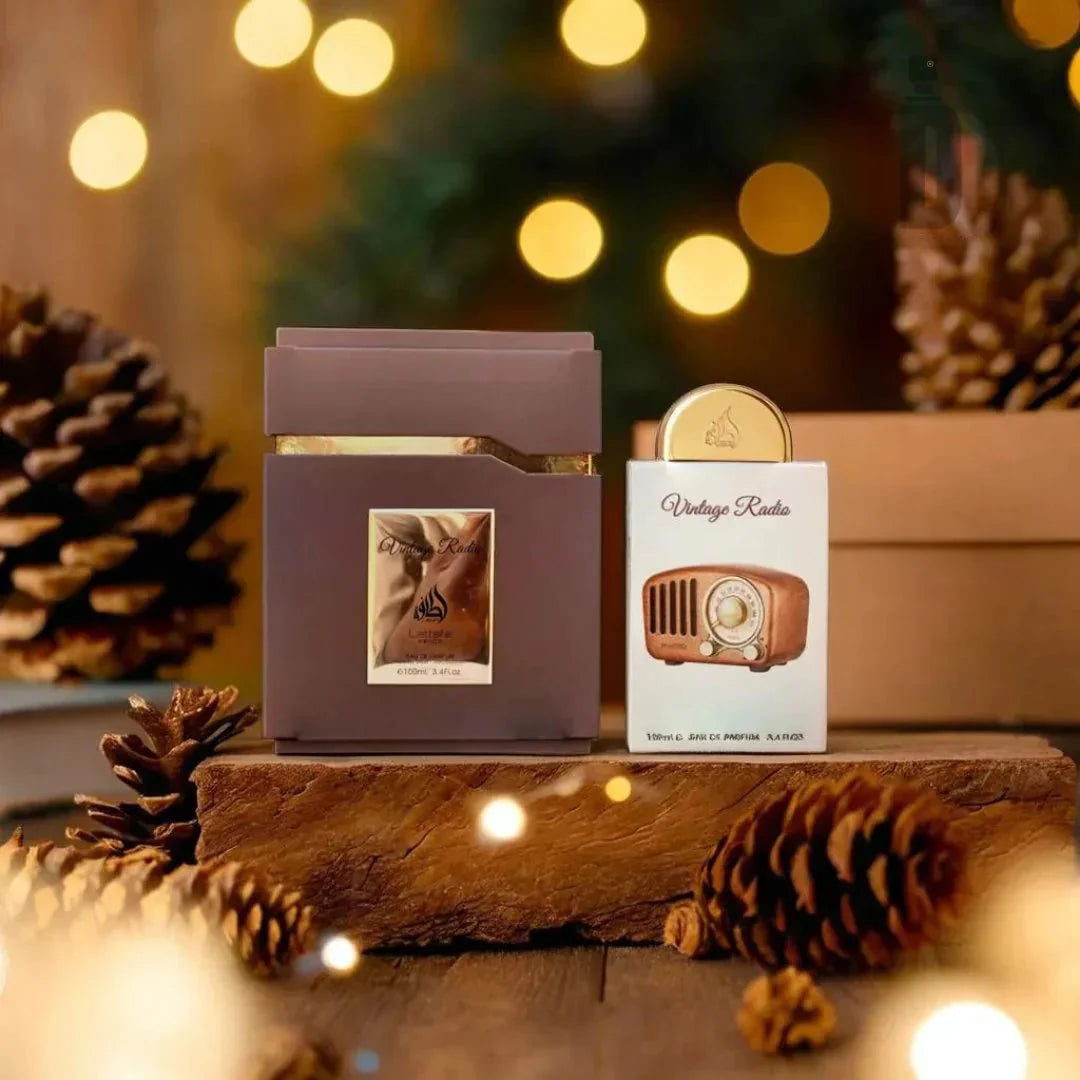 Step into a world where modern charisma meets timeless warmth. Lattafa Vintage Radio is a bold, magnetic fragrance crafted for those who stand out effortlessly. Opening with a vibrant wave of spice and freshness, it evolves into a heart of fruity sweetness layered with aromatic herbs. The base lingers with smooth vanilla, roasted chestnut, and rich woods, creating a scent that’s both comforting and addictive.